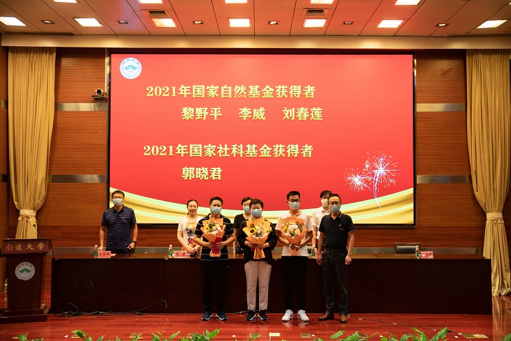 会上对2021年国家自然基金、社科基金获得者、校优秀教育工作者、校优秀共产党员、校卓越贡献奖和2021年新晋高级职称的教师教师进行了表彰。参会学院领导为获奖代表颁奖。