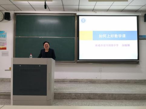 南通市崇川初级中学特级教师闵晓颖老师为全体师范生作了《如何上好数学课》专题讲座。闵晓颖老师淡泊名利、默默耕耘,以精湛的教学水平和恪尽职守的敬业精神扎根在三尺讲台、行走在教育教学改革前沿。闵老师从三个问题、三种能力、三个前提、三个读懂及三大流程出发,启发并引导全体师范生坚持“本真数学”的教学主张,推行素质教育、实现高效课堂,并主张自主探究式、小组讨论等学习法,充分发挥学生在课堂上的主体性作用。闵老师的讲话发人深省,赢得了同学们的热烈掌声,更为全体师范生提供了珍贵的经验。