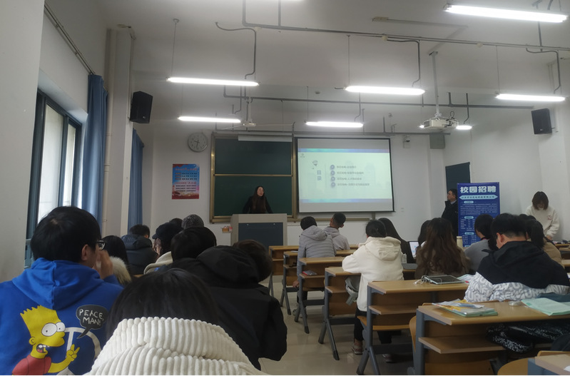 理学院技术物理系在11月25日开展了2018级光电信息科学与工程专业学生的第二次实习动员,分别邀请了中天光纤朱茜茜经理、京芯光电薛锋莉经理各自企业所需岗位,学生在生产实践中能够掌握的技能、小蓝视频、以及企业待遇等。同学们对于两家光电企业有了更深入的了解,并且积极报名参加实习。(许田)