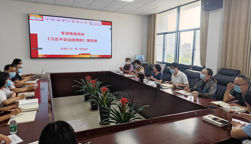 9月6日下午,理学院党委理论学习中心组召开专题学习(扩大)会,邀请马克思主义学院蔡娟对全体师生党员以线上线下相结合的方式做《习近平谈治国理政》第四卷的专题学习辅导。