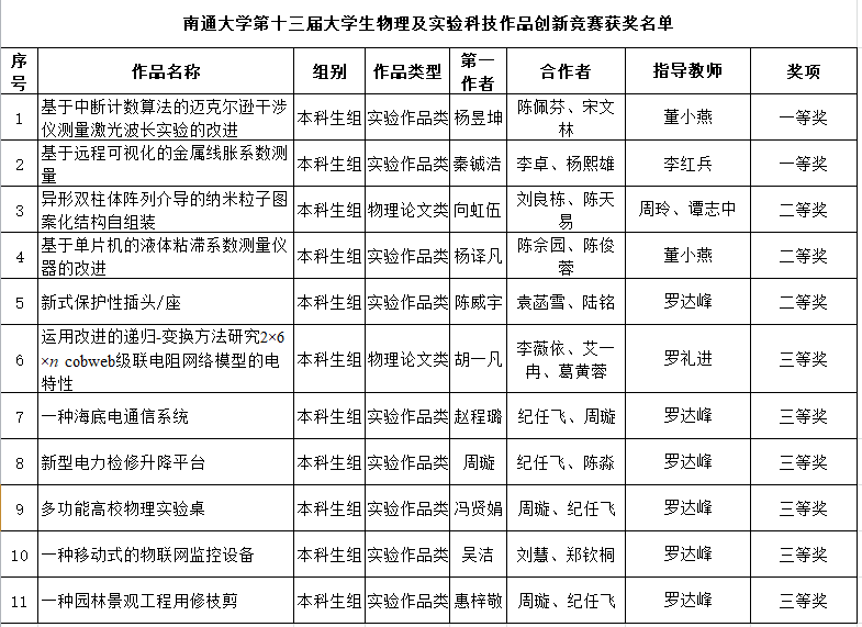 现将获奖名单公示,如有异议,请于11月16日之前联系理学院0513-55003306。