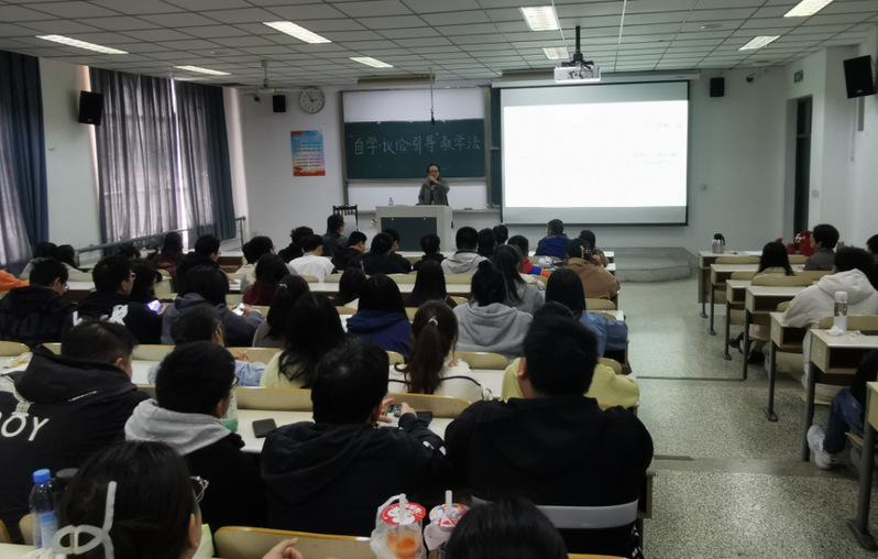 3月15日下午,李庾南老师应邀来到理学院做第一次讲座,主题为“再谈‘三学’,建构有规则的自由课堂”。李老师辅以教学实例分析说明,思路清晰、逻辑严密、深入浅出、娓娓道来,同学们受益匪浅。理学院本学期设置《“自学•议论•引导”教学论》,该课程由李庾南老师及其团队成员主讲,旨在进一步达成数学与应用数学(师范)专业培养目标,提升师范生的实践技能。李老师已届85岁高龄,但精神矍铄、神采奕奕,睿智机敏且富有感染力,她对于教育事业的满腔热爱和一生为之奋斗不息的精神力量深深的感染了在场的师生。