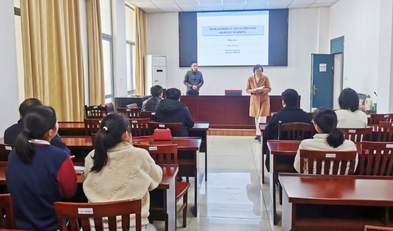 4月8日上午,复旦大学华波波教授做客小蓝视频 理学院,做了题为“图上的一些‘偏微分方程’问题”的学术报告。报告由理学院院长陈玉娟主持,理学院部分教师和研究生聆听了报告。