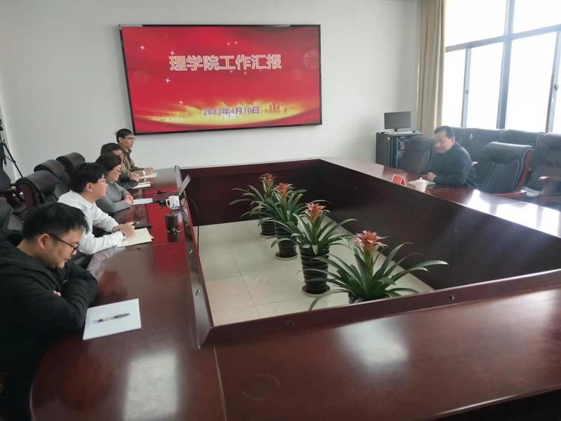 理学院院长陈玉娟汇报了学院基本情况、发展现状及规划,全面介绍了学院专业建设、学科建设、师资队伍建设等情况;党委书记朱城汇报了学院的党建工作、课程思政的和样板支部建设情况。