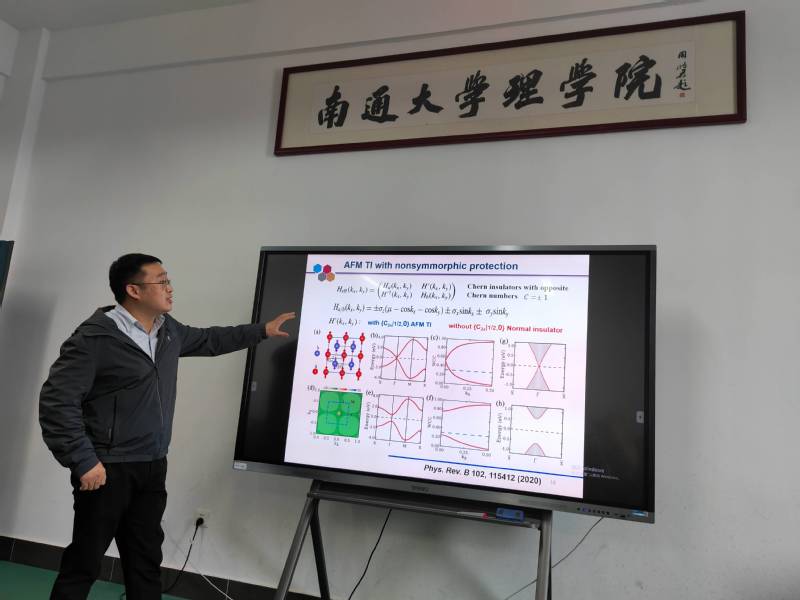 4月27日下午,山东大学齐鲁青年学者牛成旺教授应邀访问小蓝视频 理学院,并做了题为“二维磁性拓扑绝缘物态的理论研究”的学术报告。报告会由张国仁老师主持。