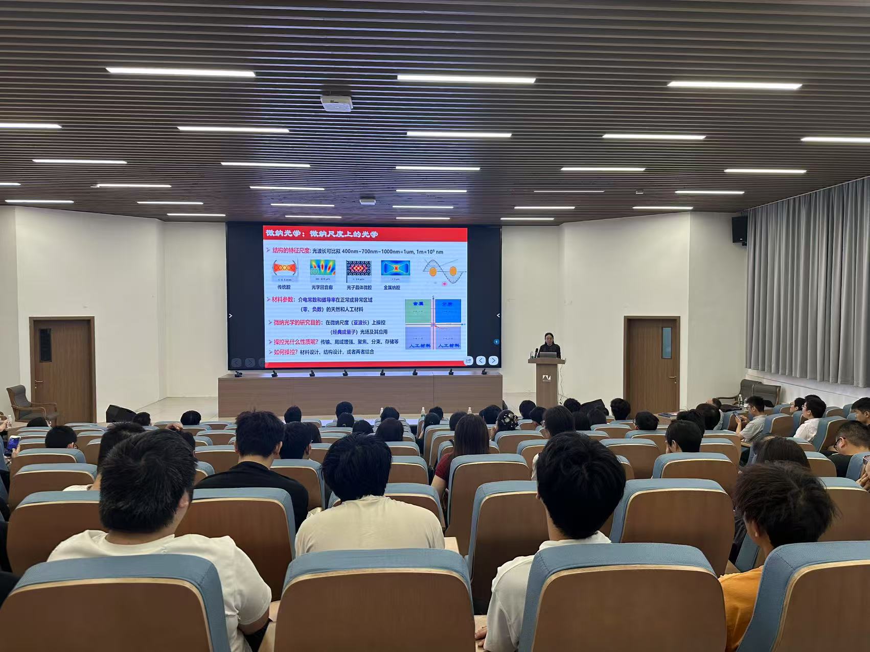 古英在报告中指出,随着量子器件的集成化和小型化,微纳光子学为芯片上量子光学和量子信息研究提供了新的维度和效应。她从多种微纳光子结构及其组合结构中的光学模式出发,深入探讨了量子光场与量子体系的耦合、腔量子电动力学、量子干涉及量子信息等领域的研究进展,揭示了微纳尺度上光与量子体系相互作用的新现象与新效应,为相关领域的理论研究和潜在应用提供了重要基础。此次讲座为小蓝视频 师生提供了与顶尖学者面对面交流的机会,进一步拓宽了学术视野,激发了科研热情。