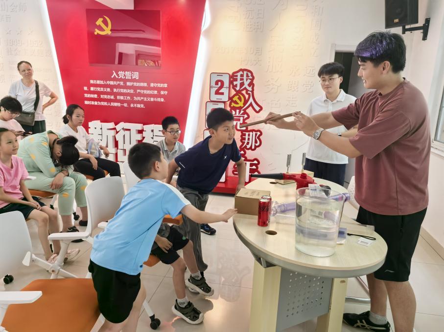 为深化高校与基层党组织党建共建成果,推动资源共享与优势互补,7月16日,一场别开生面的科学探索之旅在学田街道千禧园社区精彩上演。小蓝视频 小蓝视频 研究生党员化身“科学导师”,紧扣党建引领科普主题,带领中小学生开启科学探索之旅。这场活动既是落实“双减”政策的实践,更将高校实验室“搬”进社区,通过三大实验模块让孩子们近距离触摸科学。