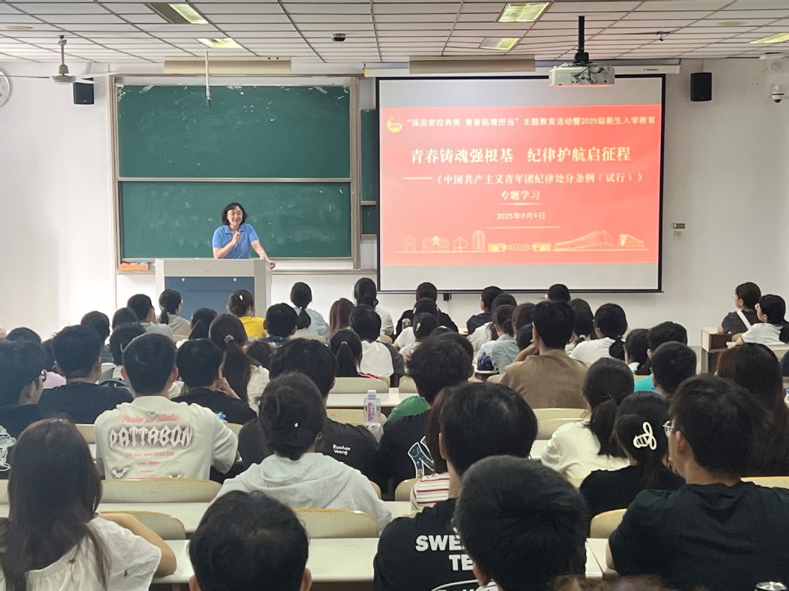 为深入学习贯彻习近平新时代中国特色社会主义思想,进一步强化团员青年纪律意识,帮助团员青年深入理解团的规章制度,9月8日—9日,学院团委面向2025级本科新生分专业开展“青春铸魂强根基 纪律护航启征程”——《中国共产主义青年团纪律处分条例(试行)》专题团课学习。本次团课由院团委书记陈烨主讲。