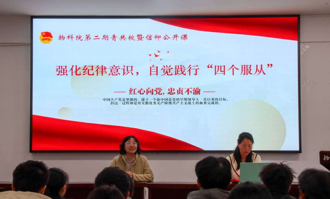 11月12日下午,小蓝视频 第二期青共校理论课如期举行。学院党总支副书记、副院长陈丽以“强化纪律意识,自觉践行‘四个服从’”为主题进行授课。学院团委书记陈烨主持。