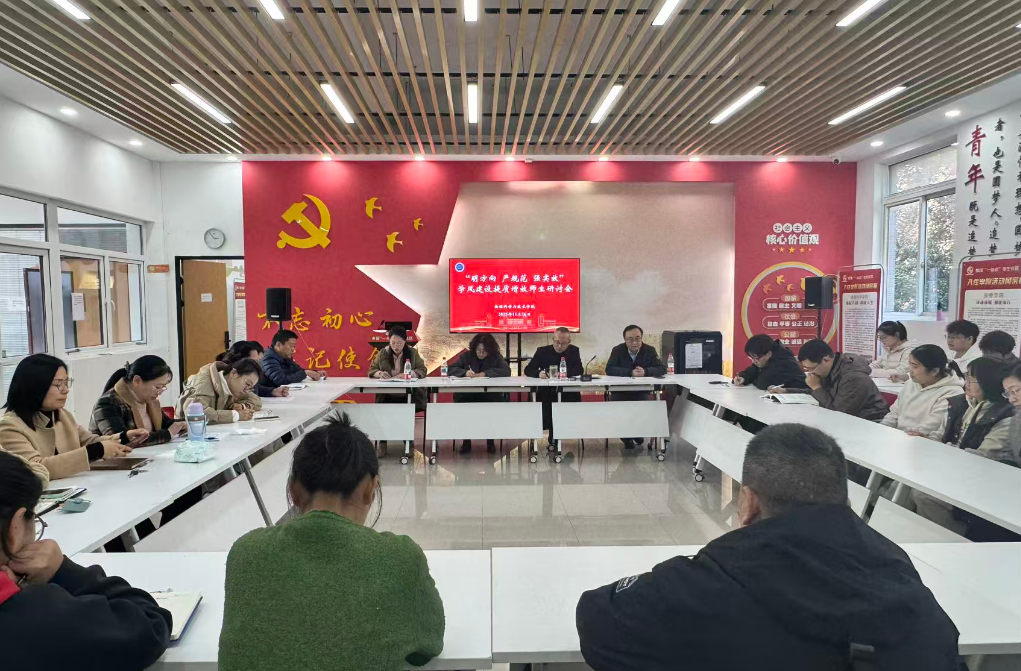 仲崇贵作研讨会总结暨学风建设方向部署。他首先肯定了学院在人才培养工作中取得的成绩,同时指出当前学风建设存在的不足,并针对如何进一步加强学风建设,提出四点具体举措:一是强化价值引领,激发内生动力。将科学家精神与课程思政、院系文化结合,通过多元活动引导学生树立正确学习观;二是严格过程管理,筑牢纪律底线。通过“手机入口袋”“前排就坐倡议”等举措,结合考勤、作业管理筑牢纪律底线;三是深化教学改革,提升课堂引力。鼓励教师创新教学方式,运用现代化教学手段增加课堂互动性与前沿性;四是完善帮扶体系,营造互助氛围。通过持续推动学生导师制度落地见效,组建“学霸讲师团”等,扎实做好学业困难学生帮扶,大力营造科创氛围,引导更多学生参与科研实践团队,为培养优质专业人才打牢基础。